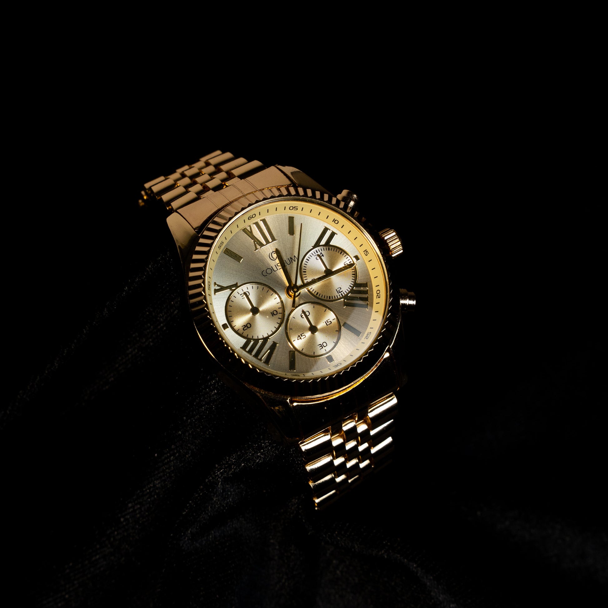 Açık Kadranlı Çok Göstergeli Altın Ton Erkek Saat