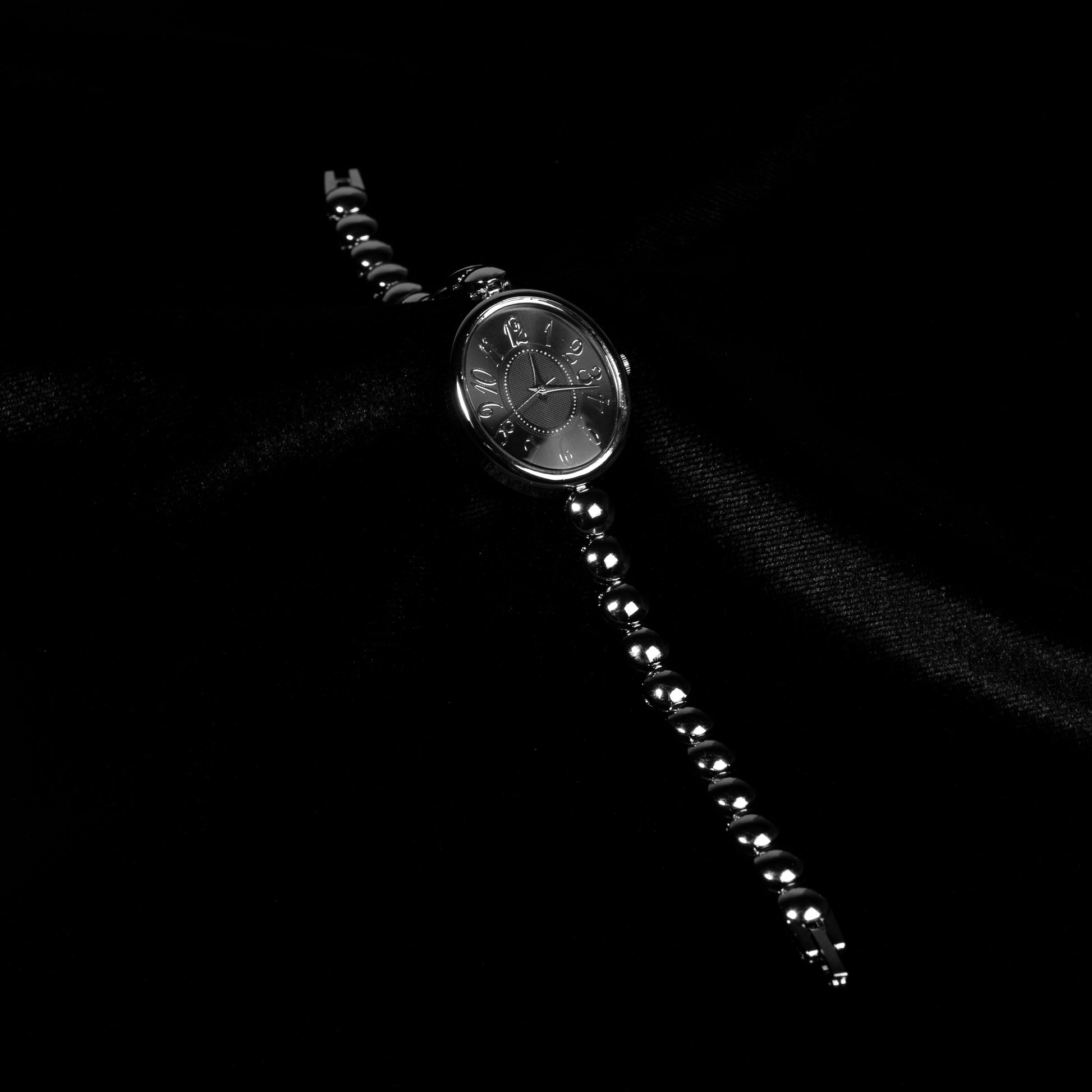 Oval formdaki kasası ve tamamı parlak boncuk detaylardan oluşan bileziğiyle bu saat, klasik saat algısına modern ve cesur bir dokunuş getirir. Akıcı hatlara sahip kadran tasarımı, ışıkla birlikte derinlik kazanarak güçlü bir görsel etki oluşturur. Bilezik yapısı sayesinde bilekte takı hissi uyandıran model, sade kombinleri bile tek başına tamamlayacak bir karakter taşır. Zamansız formu ve özgün bilezik yapısıyla günlük stiline farklılık katmak isteyenler için dikkat çekici ve iddialı bir seçenek sunar.