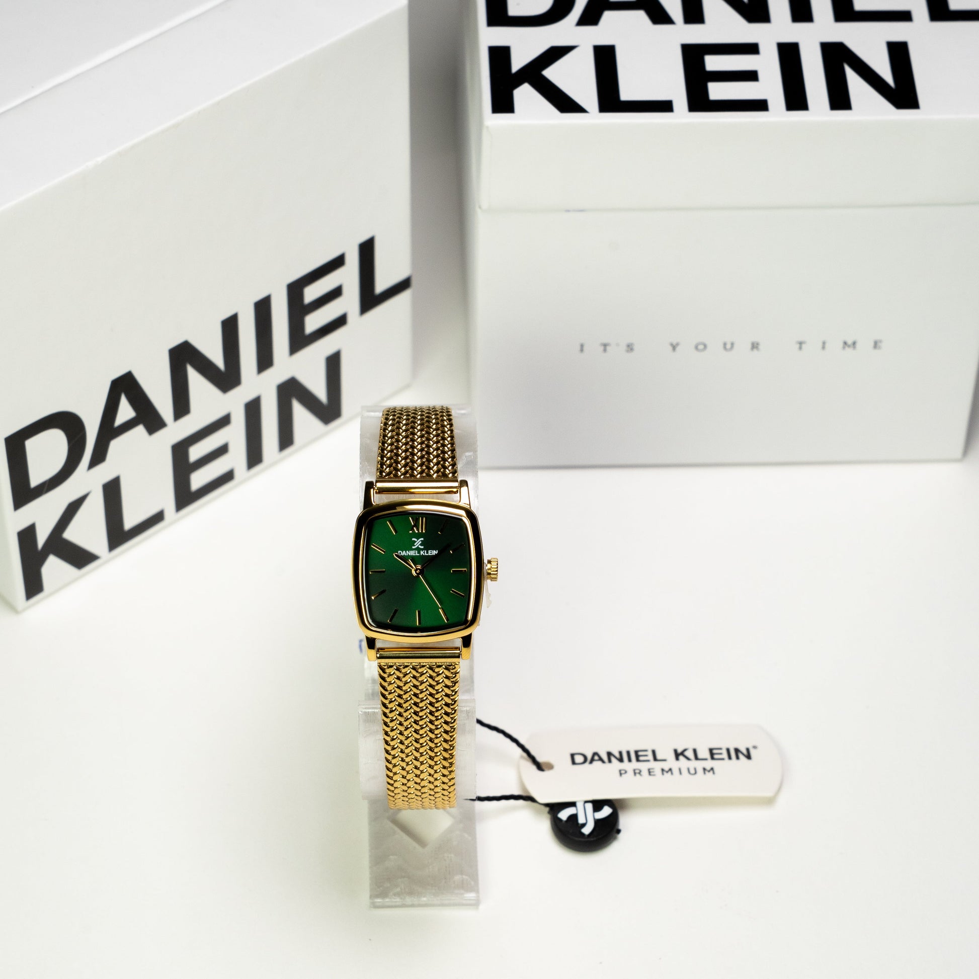 Zarif yeşil kadranı ve gold hasır metal kordonu ile öne çıkan Daniel Klein orijinal kadın kol saati, sade şıklığı sevenler için tasarlandı.