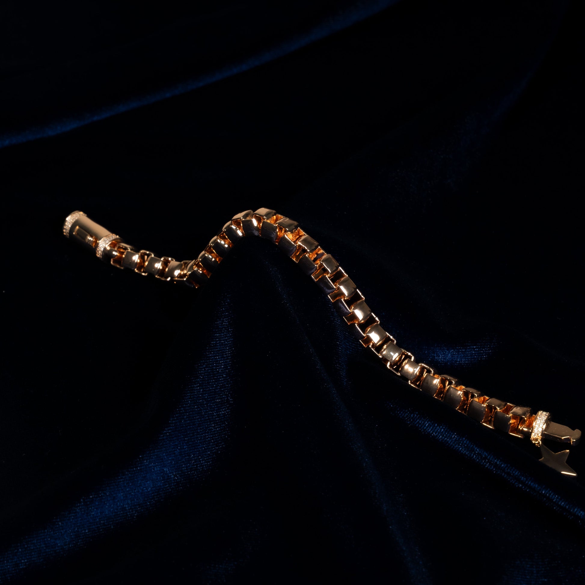 Kare formda tasarlanmış zincir yapısı sayesinde modern ve güçlü bir stil sunan bu bileklik, parlak yüzeyiyle bilekte dikkat çekici bir görünüm oluşturur. Dengeli formu sayesinde tek başına kullanıldığında sade bir şıklık, diğer bilekliklerle birlikte kombinlendiğinde ise daha iddialı bir stil yaratır. Günlük kullanımda rahatlıkla tercih edilebileceği gibi, özel davet ve kombinlere de kolayca uyum sağlayan zamansız bir aksesuardır.