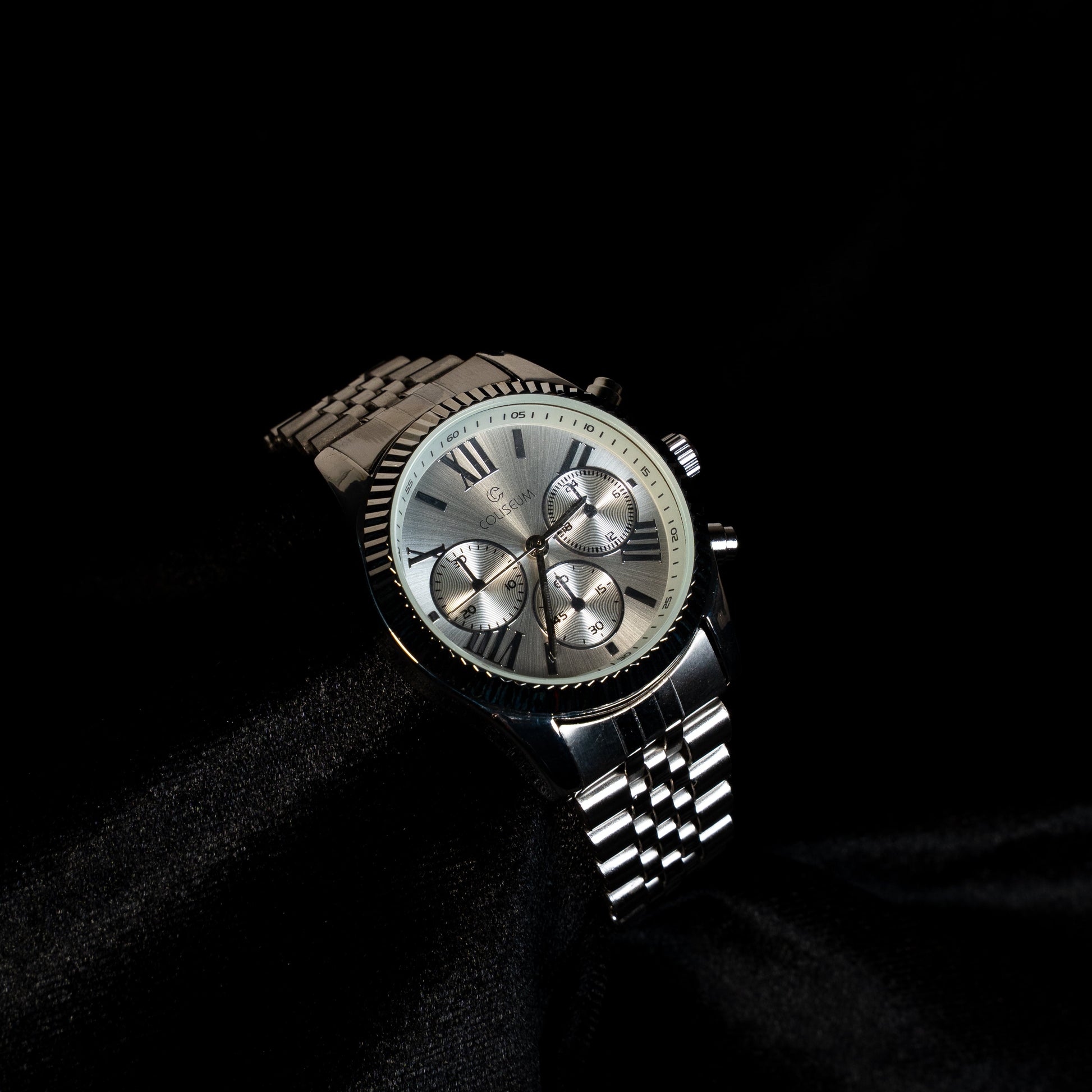 Dengeli oranları ve çok göstergeli kadran yapısıyla öne çıkan bu erkek saat, klasik çizgileri modern detaylarla bir araya getirir. Gümüş tonlu kadranı ışıkla birlikte net ve güçlü bir duruş sunarken, kronograf alt göstergeleri saate dinamik bir karakter kazandırır. Belirgin indeksler ve rafine kasa formu sayesinde hem sportif hem de şık kombinlere uyum sağlar. Günlük kullanımda olduğu kadar özel anlarda da stilini tamamlayan, güçlü ve zamansız bir erkek saati arayanlar için ideal bir seçenektir.