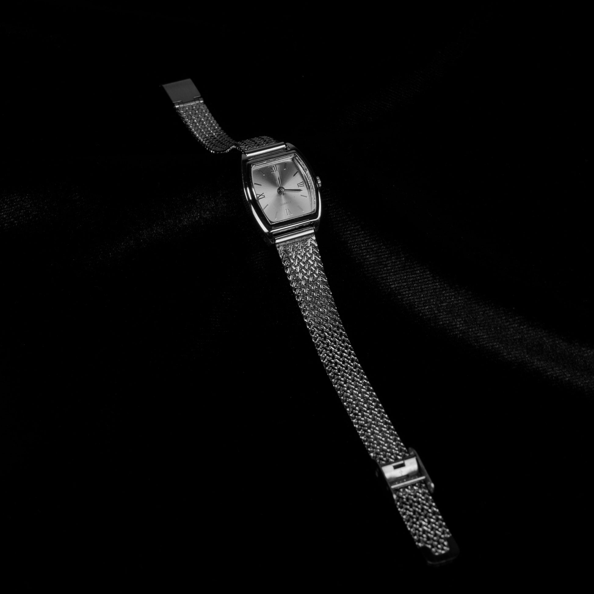 Yumuşak hatlara sahip kare kasa tasarımı ve ince örgü dokulu metal bileziğiyle zarif bir duruş sunan bu saat, sade şıklığı ön plana çıkarır. Dengeli kadran yapısı, net indeksler ve akıcı saniye hareketiyle günlük kullanımda konfor sağlar. Bilezikteki örgü form, saate klasik saatlerden ayrılan karakterli bir görünüm kazandırır. Minimal stilini detaylarla tamamlamak isteyenler için güçlü ama sade bir tercih.