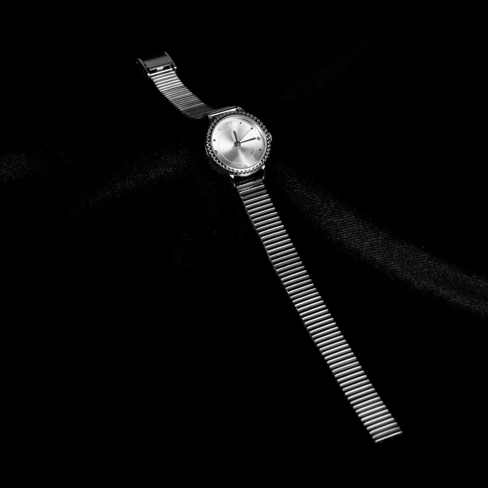 Yuvarlak kasa çevresini saran zarif taş detaylarıyla öne çıkan bu saat, klasik şıklığı modern dokunuşlarla buluşturur. Işığı dengeli şekilde yansıtan sade kadranı, saat okunurluğunu korurken estetik bir görünüm sunar. Esnek metal bilezik yapısı bilekte rahat bir kullanım sağlarken, dengeli ağırlığı gün boyu konforlu his verir. Günlük stilinize zarafet katmak ya da daha özel kombinleri tamamlamak için tasarlanmış, dikkat çekmeden fark yaratan bir modeldir.