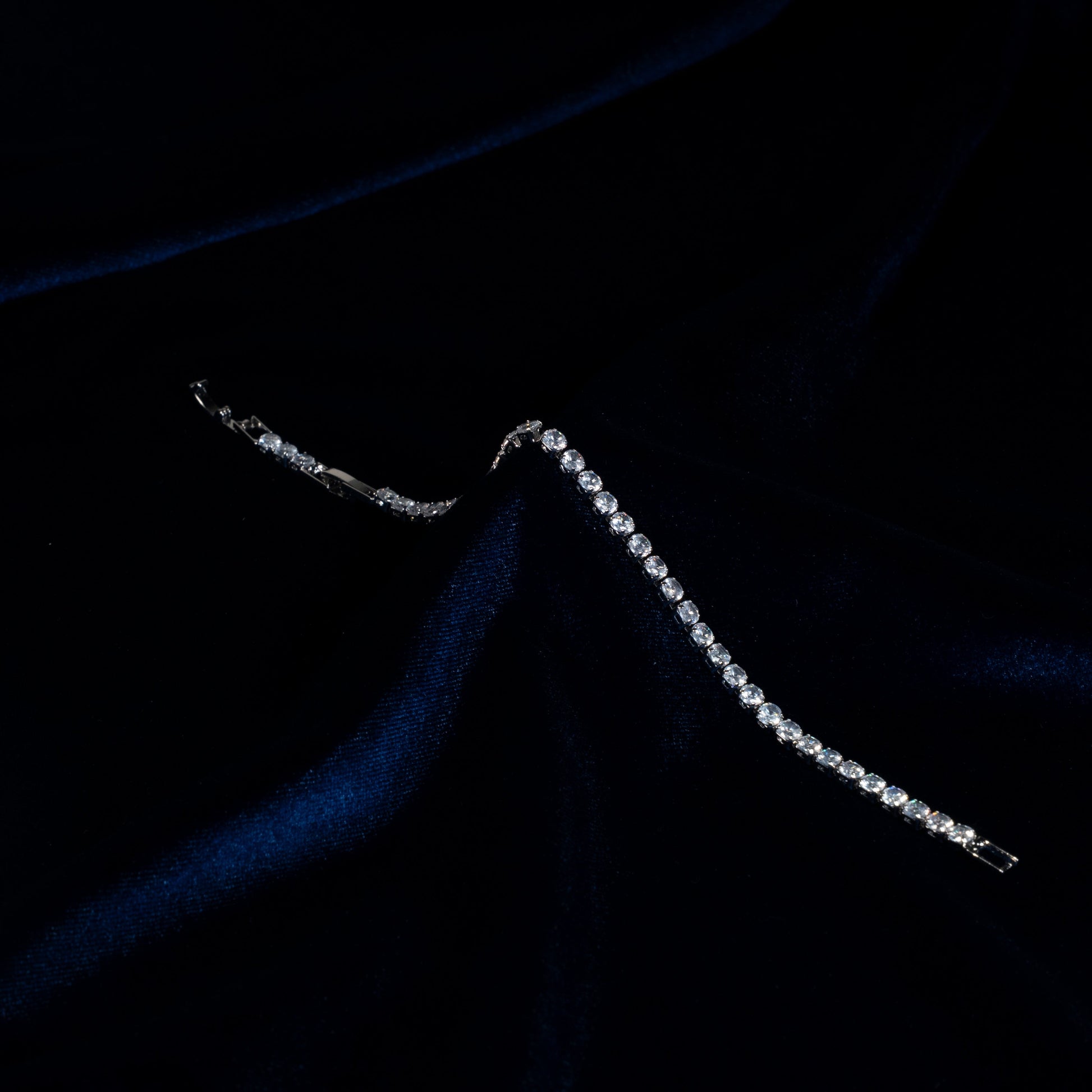 Tek tek dizilmiş taş detaylarıyla bilekte güçlü bir ışıltı oluşturan bu bileklik, klasik ve iddialı bir görünüm sunar. Dengeli yapısı sayesinde bileği zarif şekilde sarar, tek başına kullanıldığında şık bir vurgu oluşturur. Özel gün kombinlerinden günlük şıklığa kadar geniş kullanım alanına sahiptir ve zamansız tasarımıyla uzun süre stilin bir parçası olur.