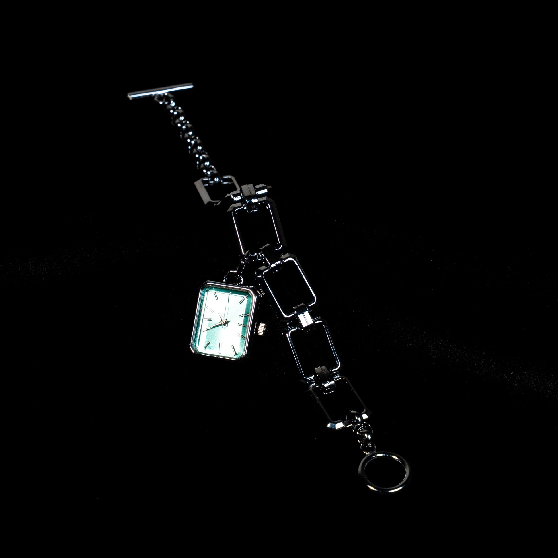 Yeşil Kadranlı Zincir Bilezik Kare Kasa Kadın Saat