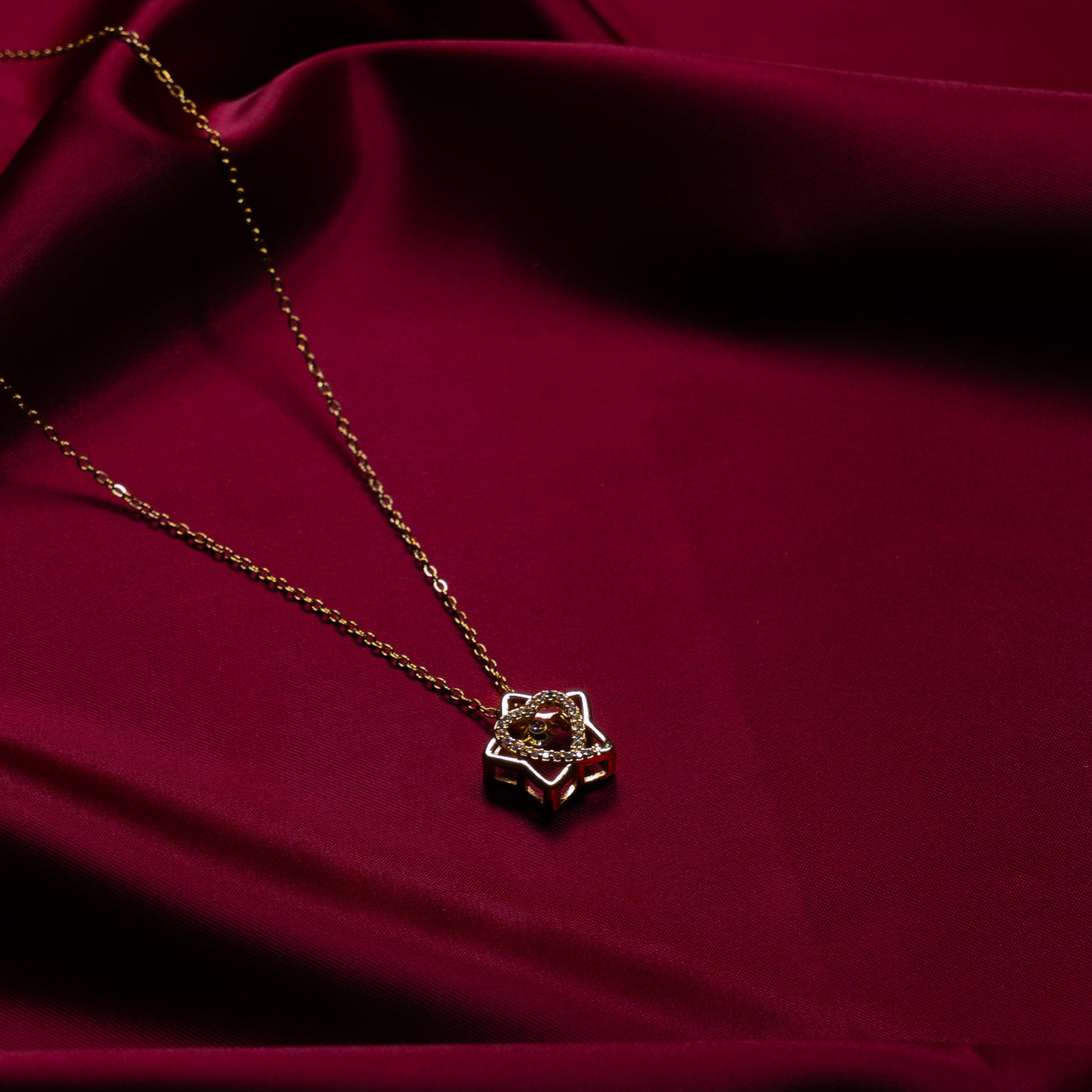 Zirkon Taşlı Kalp Detaylı Gold Çelik Kolye